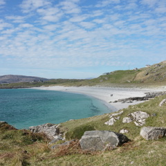 Each island is different. Vatersay and Barra (joined by a beautiful winding causeway) are undulating picturesque and small islands, with white shell sands and emerald green water. We ferry to Eriskay and cycle from there through South Uist, North Uist to Benbecula, a stunning two-day ride that goes through barren, remote flatlands towards the northern, hilly landscape of Benbercula. From here we ferry to Harris, hitting the stunning beaches of Lluskentyre, Eoropie, Dalmore.. to name just a few.